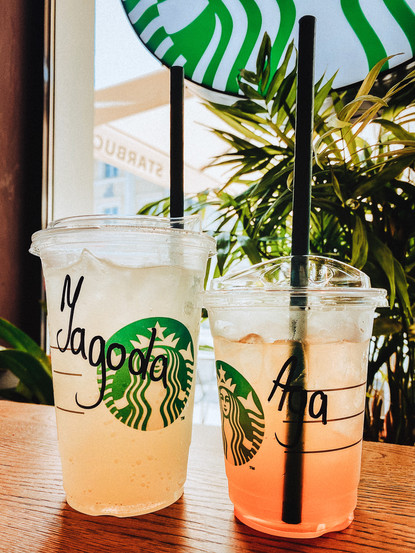 Lecimy dalej! A właściwie idziemy spokojnie noga za nogą, pijąc po drodze ogromne ilości wody. Kolejny punkt... Możecie się uśmiać, ale Starbucks. Jagoda nigdy nie była, a że to takie instagramowo-tiktakowe, to musiałyśmy tam wejść - i całe szczęście, bo klimatyzacja nagle okazała się takim miłym powiewem świeżości! Dziecko zadowolone, lemoniada przepychota, a i mały głód już nas zdążył dopaść... Na wyjściu Jagoda podziękowała całej obsłudze za miłe spotkanie i pochwaliła ich lemoniady i croissanty z czekoladą. Widać było, że chyba nikt im tylu miłych słów nie powiedział, bo miałam wrażenie, że jedna z dziewczyn to miała łzy w oczach...