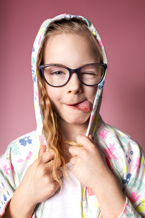 Kiedy wybierałyśmy kolory teł, Lilka od razu jako pierwszy wskazała ten wściekły róż. Spodobał jej się od razu. Zazwyczaj wykorzystuję go do fotografii produktowej, ale tym razem w połączeniu z szarością, czernią i trampkami ładnie stworzyło nam całość.
