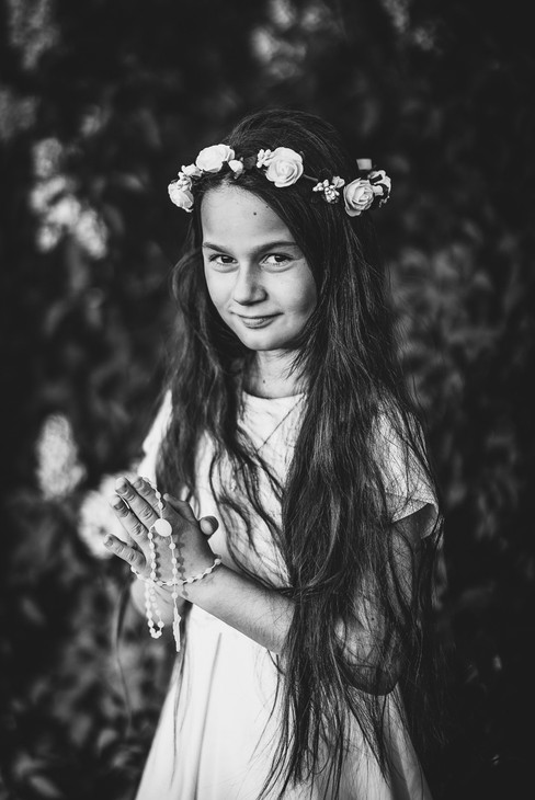 Ostatni post był z chłopcami, dzisiejszy będzie z sympatyczną dziesięciolatką... oczywiście jeszcze w wersji komunijnej. Maj oprócz matur i komunii, kojarzy się jeszcze z kwitnącym i przede wszystkim bosko pachnącym bzem! Tylko nie zróbcie tego co ja i nie nazrywajcie dużego bukietu (albo nazrywajcie, ale bądźcie mądrzejsi!) i nie stawiajcie go w salonie, bo od tego intensywnego zapachu po całej nocy strasznie boli głowa ;) A czemu piszę właśnie o tym kwiatku? Chociaż chyba bardziej jest to krzak? Botanika nie jest moją mocną stroną, ale wykorzystaliśmy tą piękną roślinę w naszym komunijnym plenerze i efektami tego spotkania właśnie się chcemy z Wami podzielić.