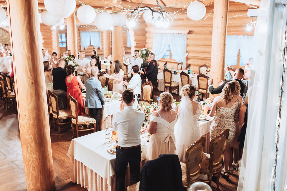 Teraz przechodzimy za stoły, gdzie o odpowiednią zabawę zadbali panowie od muzyki. "Gorzko-gorzko" wjechało od razu i Para Młoda nie miała nic do protestowania, bo Goście tylko narzekali, że było słabo... Po pierwszym pysznym daniu, Kasia i Szymon czynili honory i zaprezentowali swój pierwszy taniec.